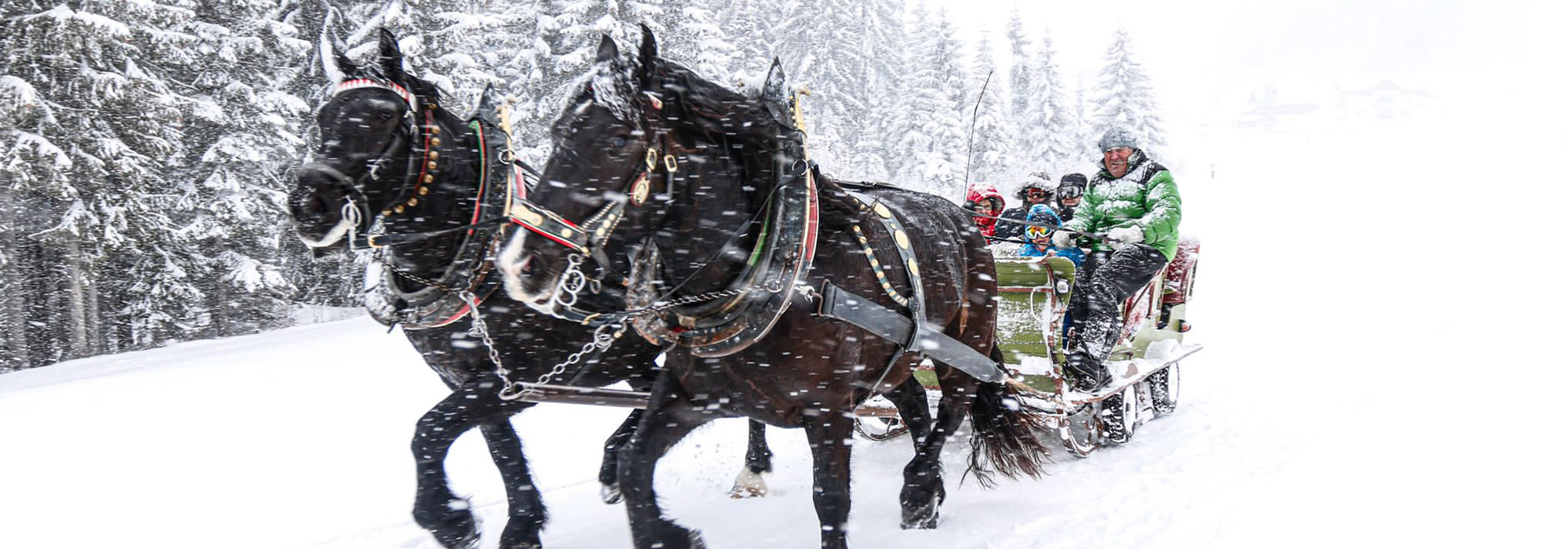 Die Kufen des Pferdeschlittens gleiten fast lautlos über die Schneedecke, die Glöckchen am Geschirr der Tiere klingeln leise im Takt.